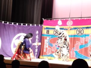 12/20(土)、暖かい日差しが心地よい午後、上関町総合文化センターで広島県安芸高田市から来られた錦城神楽団の公演が行われました。
