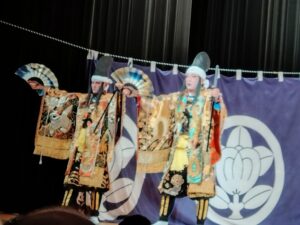 各演目、約1時間でしたが、この間、鳴らしつづける笛や太鼓のお囃子、それに合わせた、雅で豪華な衣装を身にまとった演者の皆さんの見事な演舞に終始圧倒されました。仕事の傍ら、演奏や演舞の練習をどれだけ積み重ねておられるのか、そしてそれを支える裏方の皆さんの見えない努力に感服するばかりです。