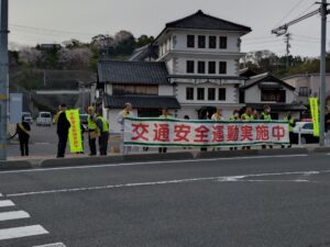 4月6日(月)、春の交通安全週間が始まりました。期間中は、交通安全協会の会員さんが、各所で立哨して交通安全を呼び掛けます。